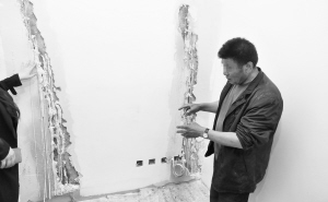 购买同户型洋房的李先生是在5月初的一场大雨后发现墙面渗水的。“我让邻居帮忙上来过来看看,他告诉我北墙那个地方漏水。”李先生表示,自己随后打电话到物业报修,但是一直到昨日上午也看到到负责的工作人员联系自己。